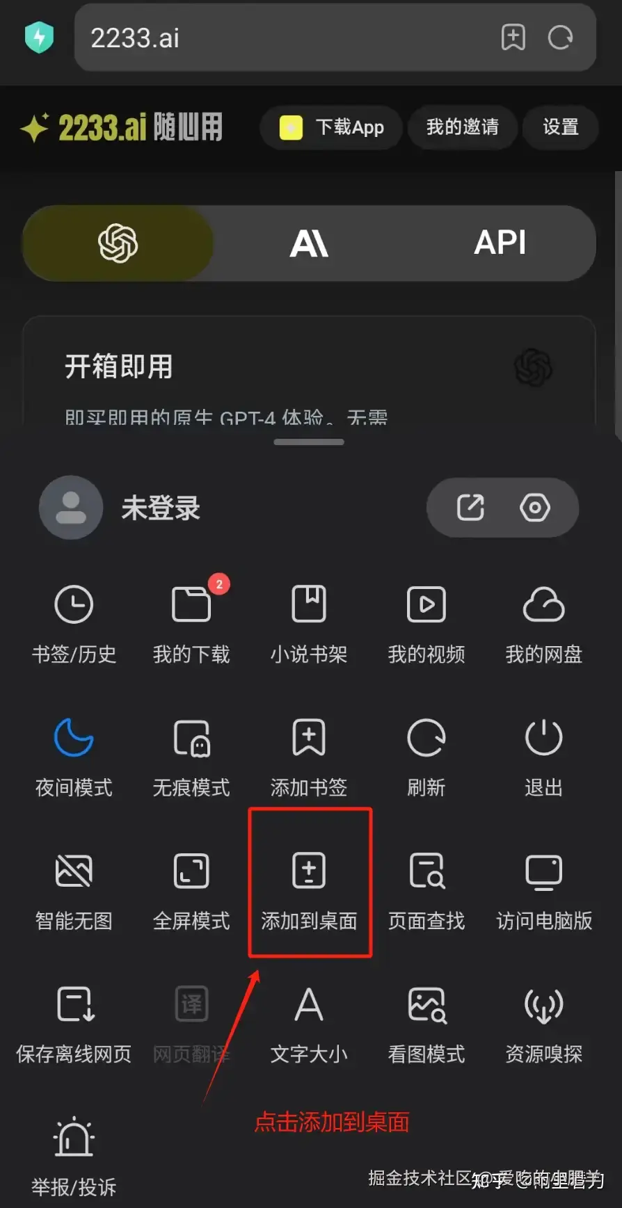 即可在手机页面看到2233.ai的软件图标,然后一点就进入到2233的页面,无需再重新得打开网址进入。