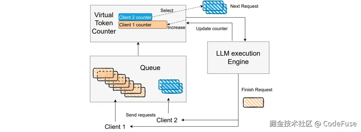 目前LLM的推理服通过为每个客户端限制流来确保多个客户端之间的公平性,然而这会引起资源利用不足的问题,即使是在资源空闲的情况下,单个客户端也因为限制流而无法充分利用所有的计算资源,从而导致用户体验差。为了解决这个问题,本文提出了基于成本函数的LLM服务公平性定义,并设计虚拟代币积分(VTC)算法实现公平服务,该算法能够有效应对未知的请求长度和动态变化的客户端数量,确保不同客户端间的公平性并提高资源利用率。