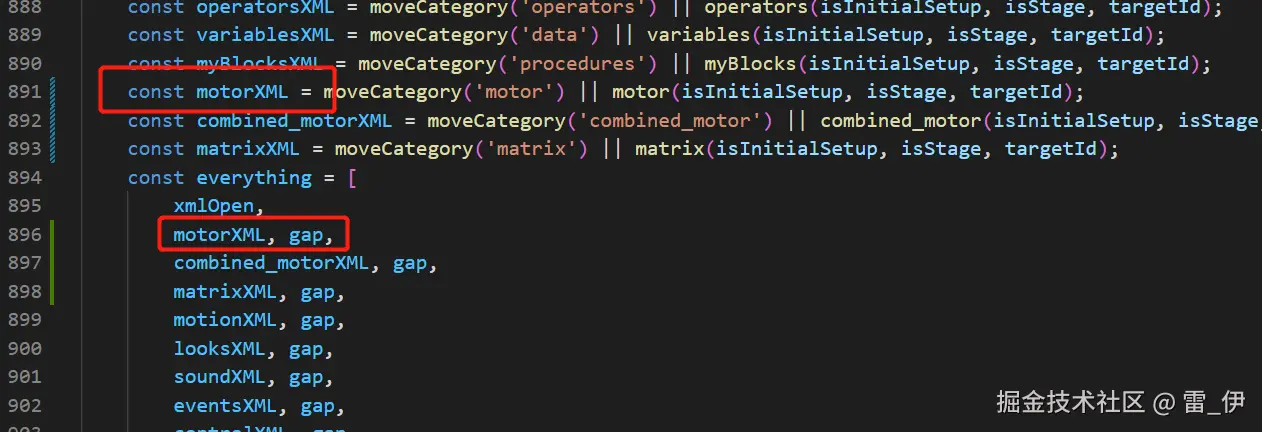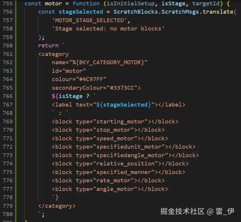 (5)然后在 scratch-gui/lib/make-toolbox-xml.js 里添加电机的 xml 配置,最后再重启项目