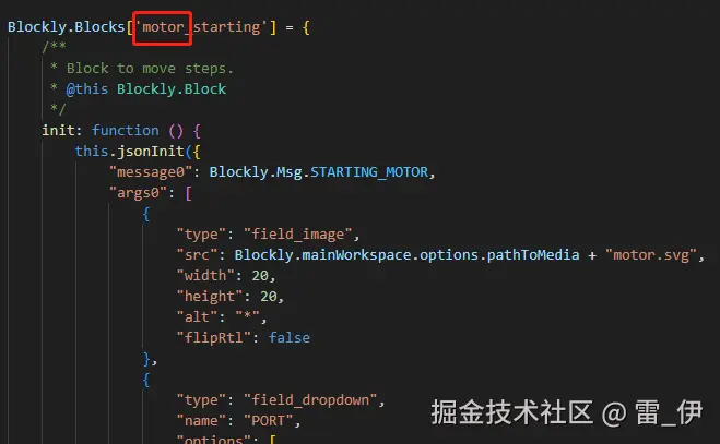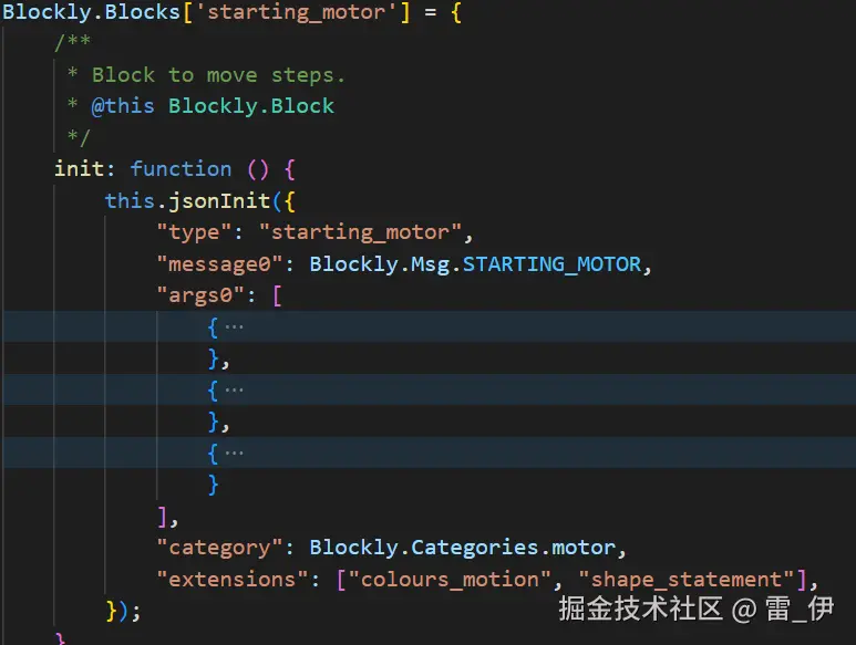 (1)在 scratch-blocks/blocks-vertical 下新建一个 motor.js,然后在里面添加电机的积木配置,在extensions里面有个shape_statement,这个是控制积木的样子