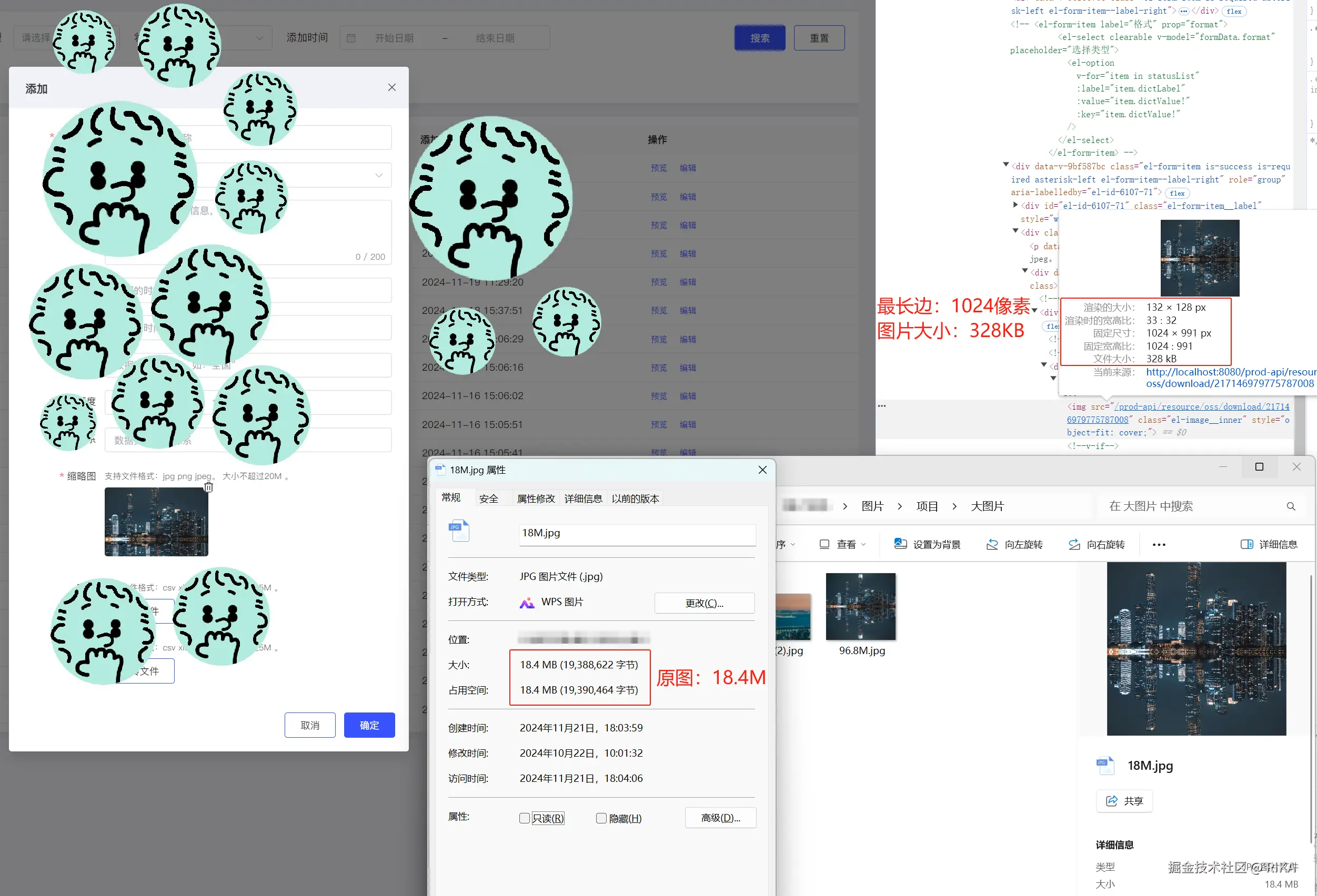 由于页面列表显示较大图片时会导致卡顿或者图片显示加载较慢,给用户带来不好的体验,因此需要在图片上传时进行压缩处理(为什么不在后端多生成一张压缩图?别问,问就是后端没空(╯‵□′)╯︵┻━┻)。产品的需求是将上传图片的最长边压缩到不超过 maxImageSide(例如 1024 像素),本文将介绍如何使用 Vue 3、TypeScript 以及 Element Plus 来实现一个简单的图片上传和压缩功能。