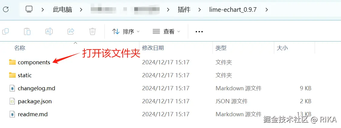 在lime-echart插件市场下载压缩包,解压,双击打开component文件夹。