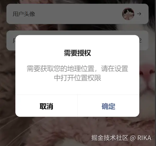 content: '需要获取您的地理位置,请在设置中打开位置权限',