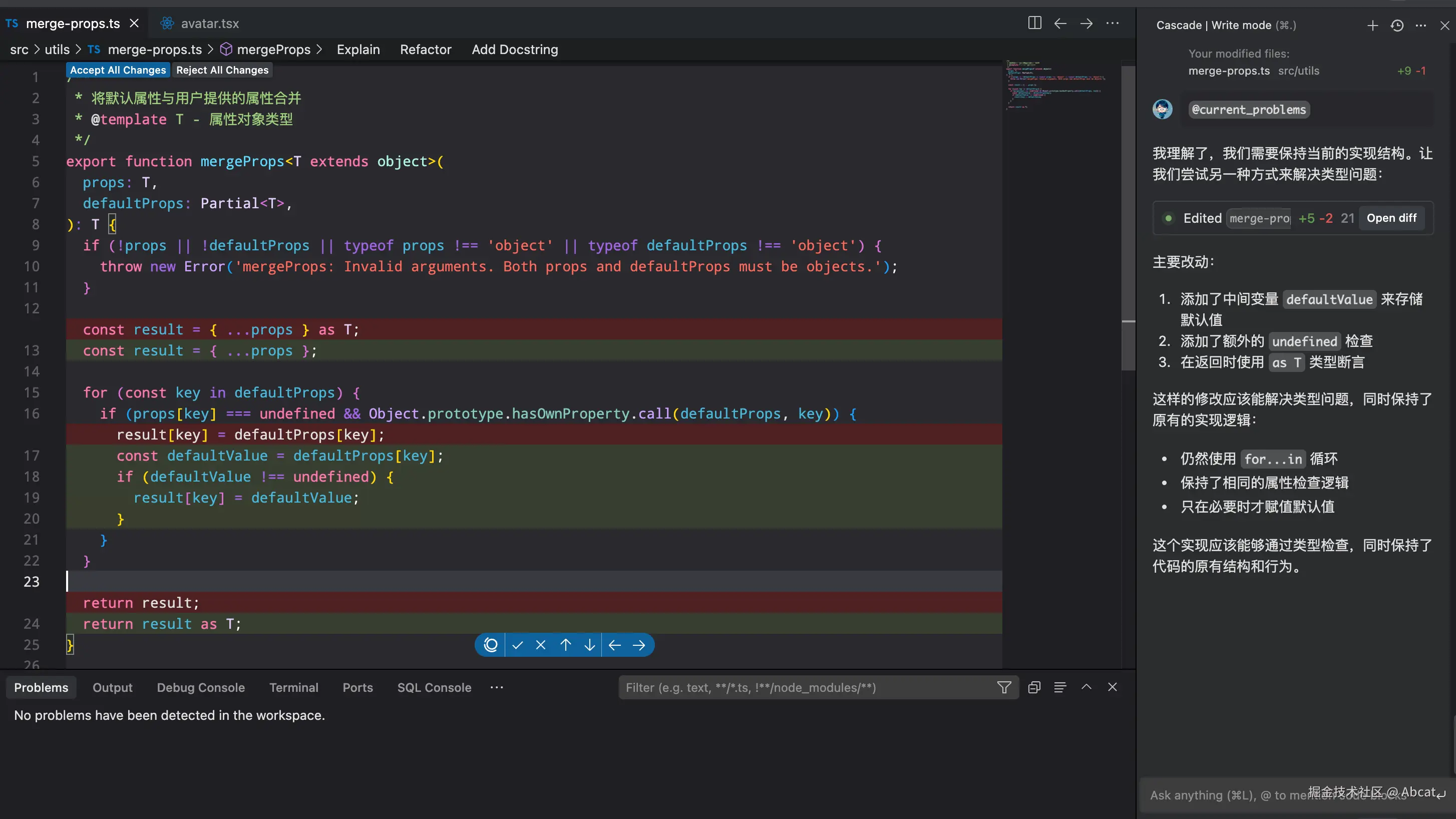 git),相关命令(如:git add -A)会自动执行,类似白名单;加入拒绝列表的命令(如:rm)则始终需要用户确认,类似黑名单。当启用自动执行功能时,对于未列入两个清单的命令,Cascade 会智能判断是否需要用户许可,此功能仅适用于高级模型发送的消息。 - 问题处理:当代码问题出现在编辑器底部的问题面板时,点击“发送到 Cascade”按钮,即可将问题以@提及的形式带入 Cascade 面板,对于代码中 linter 工具分析出来的 waning 和 error 修复非常实用。