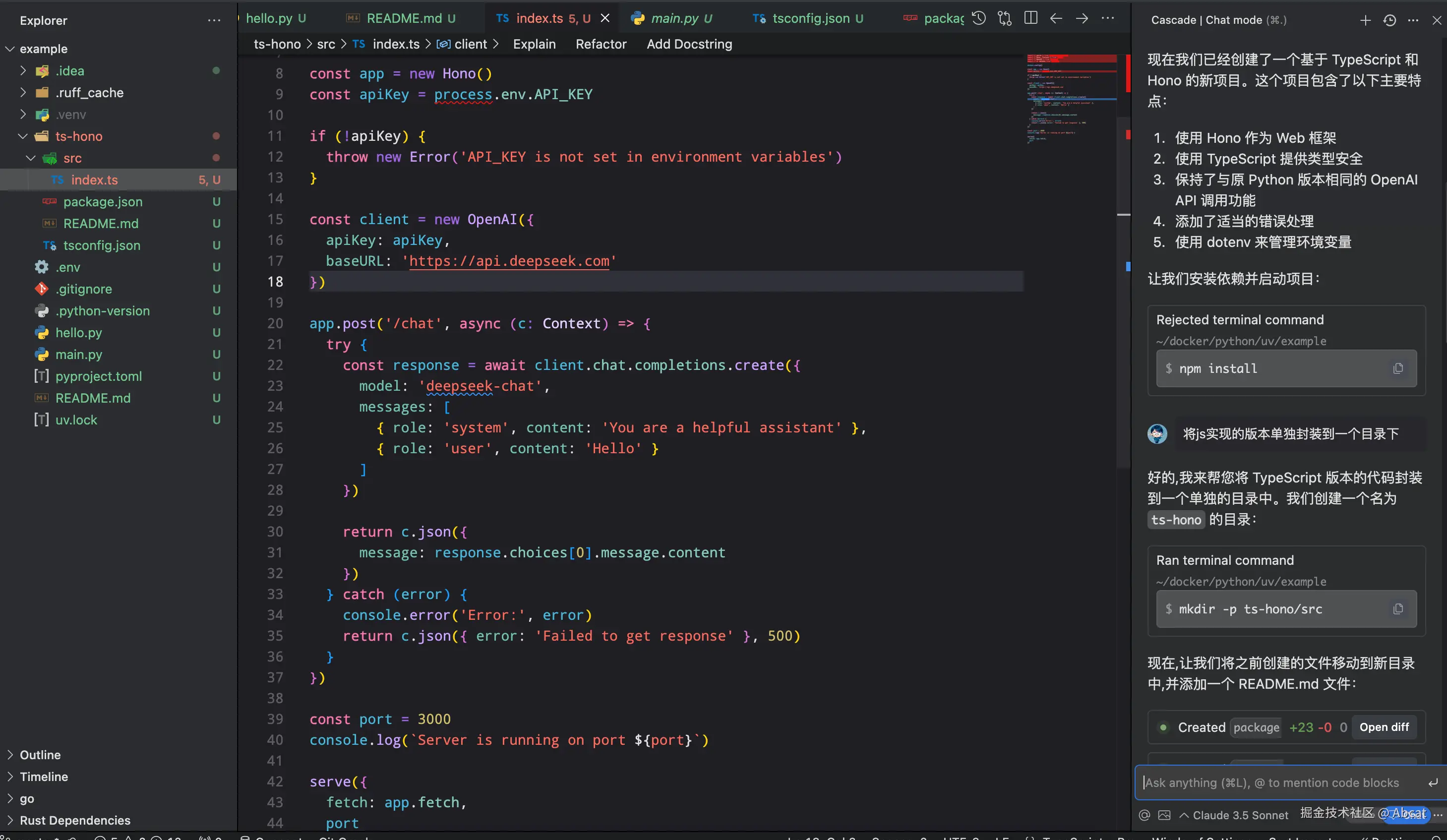 - 功能介绍: Cascade 是 Windsurf 中的一个创新功能,能够实时感知你的操作状态,无需你提供之前的动作上下文,它就能理解并协作。例如,当你更改变量名后,只需提示“继续”,Cascade 就能自动重命名其他实例,也可以检测你正在使用的软件包和工具、需要安装的软件包和工具,甚至可以为你安装它们,只需询问 Cascade 如何运行你的项目并按“接受”,它就能执行相关操作。