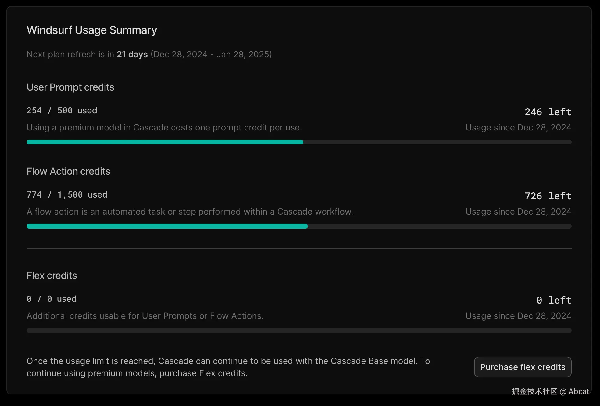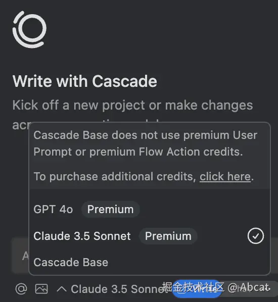 - 技术亮点:由于在基础设施方面的专业背景,平台能以免费或低成本的方式向用户提供这些模型,每当使用高级模型(例如 GPT-4o、Sonnet)向 Cascade 发送消息时,将消耗一个高级用户提示信用(Premium User Prompt credits),而当 AI 在写入和聊天模式下使用高级模型进行工具调用(例如搜索、分析、写入、终端命令等)时,将消耗一个高级流操作信用(Premium Flow Action credits),使用完所有积分后,高级型号将不再可用,但仍然可以使用 Cascade Base 型号,要恢复高级型号的访问权限,需要升级到 Pro 或 Pro Ultimate 计划。价格参考