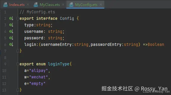 2.在MyConfig.ets中创建Interface Config 和enum loginType **