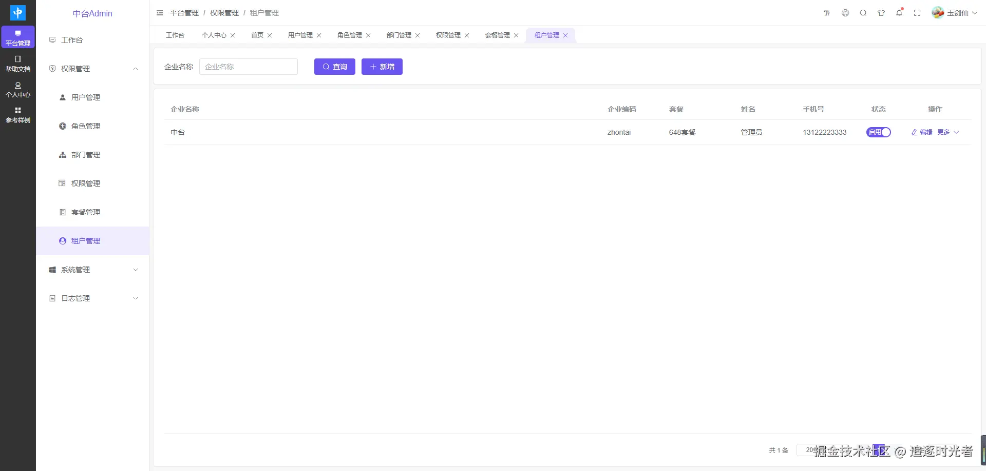 - 在线体验地址:admin.zhontai.net/login