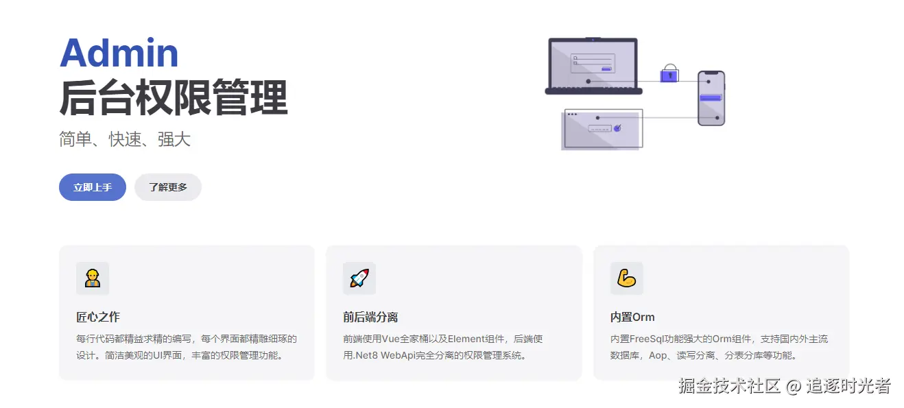 今天分享一款前端基于Vue3,后端基于.NET8开源的免费(MIT license)、简单、快速、强大的前后端分离后台权限管理系统:中台Admin(Admin.Core)。