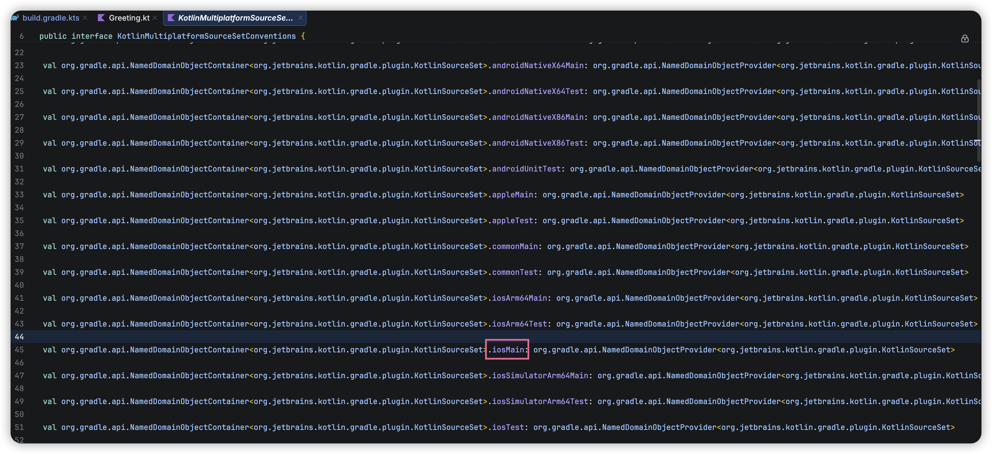 我们可以为所有IOS平台Source sets需要共享的代码申明一个中间Source set.在此场景下我们可以用到预定义的source set iosMain