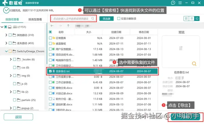 步骤2: 等待软件扫描结束后,选择自己需要恢复的文件,然后点击【导出】;