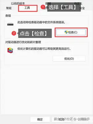 第2步: 选择【属性】,在上方点击【工具】,最后在上方的查错页面点击【检查】。