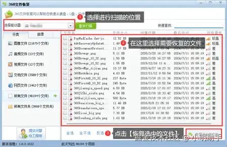 步骤3: 在指定位置选择需要恢复的文件,点击【恢复选中的文件】。