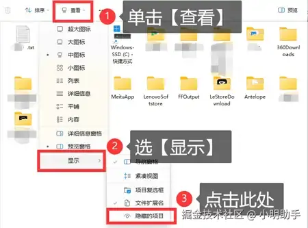 在进行U盘数据恢复之前,检查文件的隐藏项目操作如下: