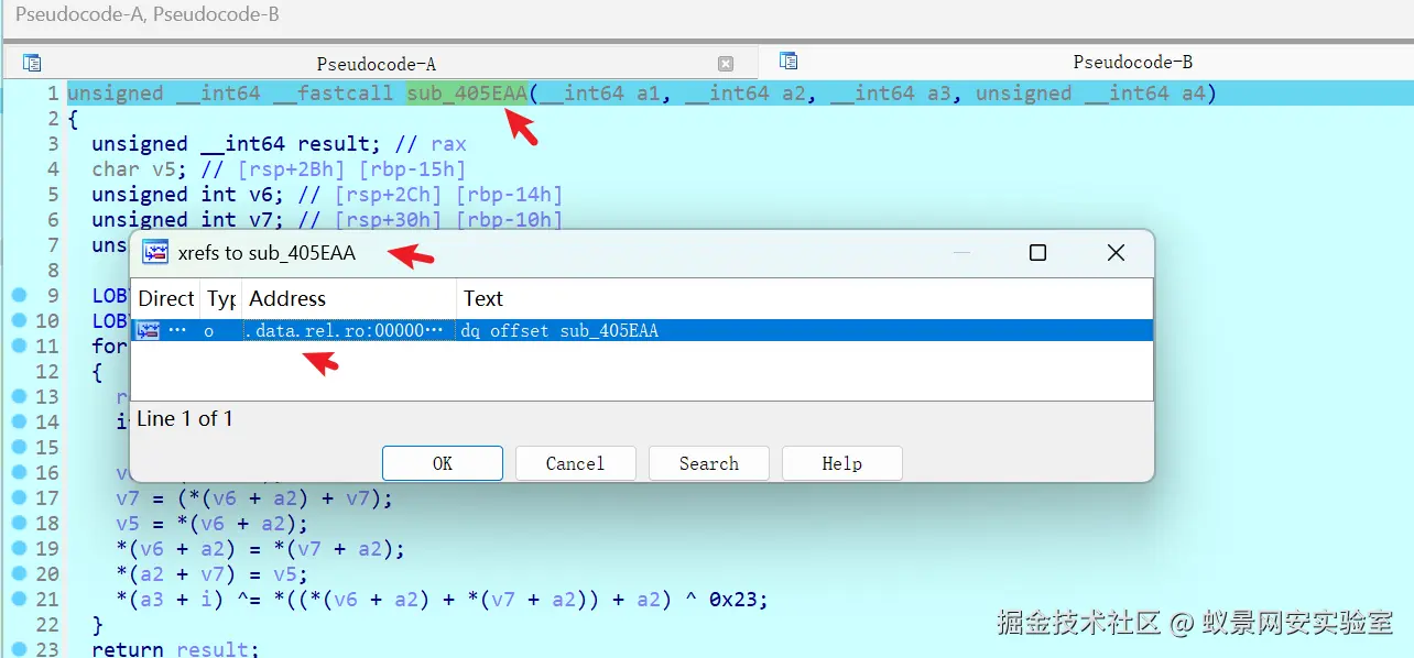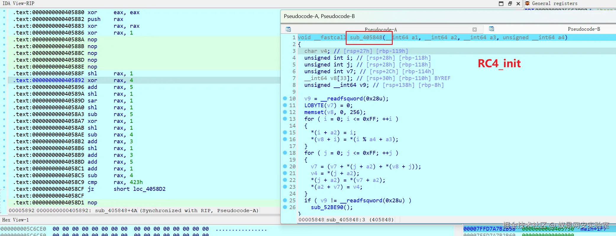 我们对rc4的两个函数进行交叉引用,看哪里调用了他们呢