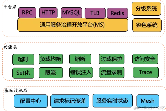 备注: 本文的服务治理专注于服务与服务之间的请求治理, 以及一条请求链路上的服务治理。更高维度的系统稳定性请参考稳定性容灾方案