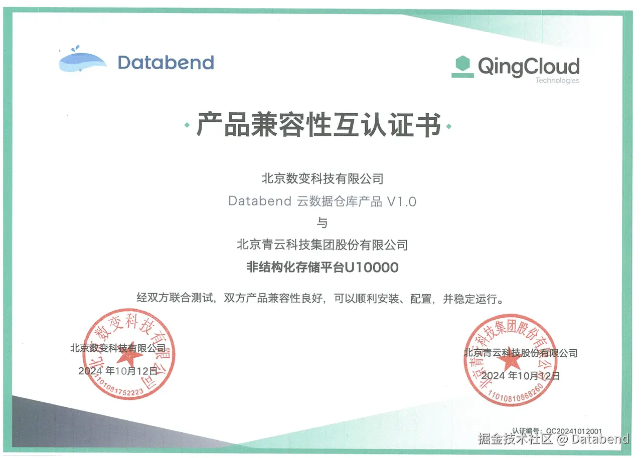 Databend 与青云 U10000 携手打造数据管理新高度