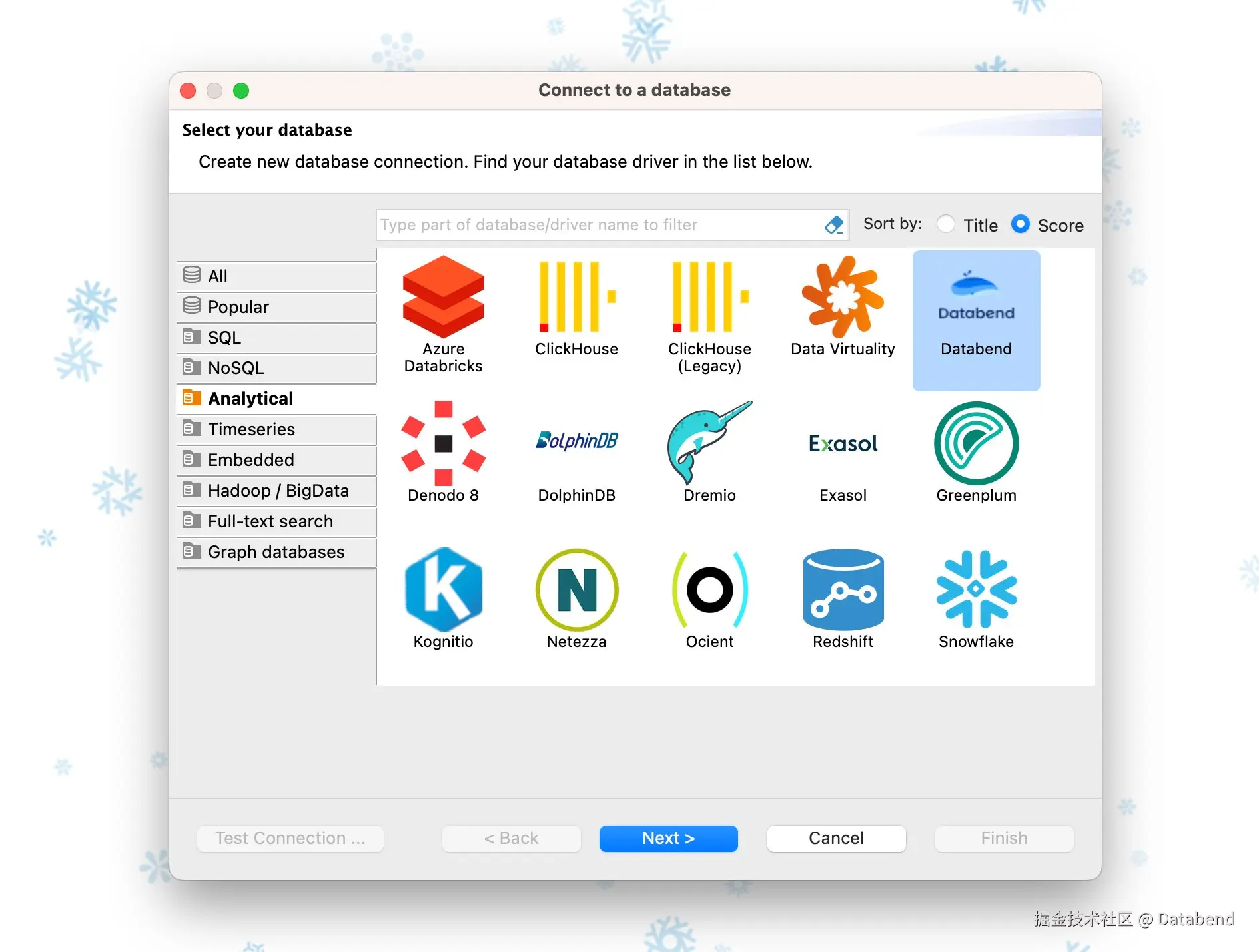 Databend 成为 DBeaver 24.3.1 的官方支持数据库,作为分析型数据库的新连接类型,为更多开发者提供便捷的数据库管理工具。