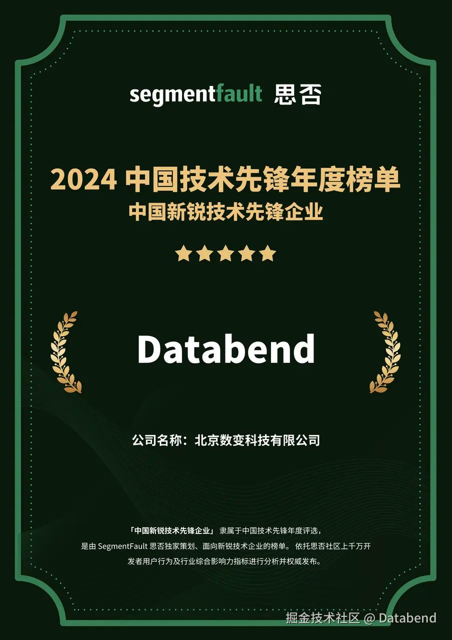 - 思否发布 2024 中国新锐技术先锋企业,Databend 入选 2024 中国新锐技术先锋企业