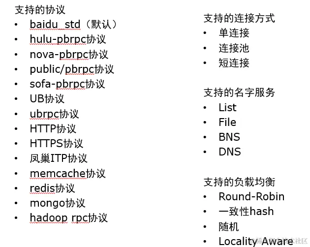 - 囊括baidu内部所有RPC协议,支持多种第三方协议