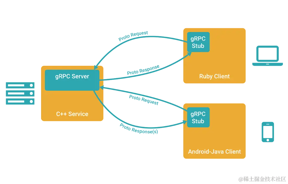 gRPC是由Google主导开发的RPC框架,使用HTTP/2协议并用ProtoBuf作为序列化工具。其客户端提供Objective-C、Java接口,服务器侧则有Java、Golang、C++等接口,从而为移动端(iOS/Androi)到服务器端通讯提供了一种解决方案。