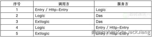 当转转并发访问的用户量不断增加,IM系统资源紧张时,需要通过增加机器进行水平弹性扩容,主要是通过服务管理平台控制中心进行实施的。入口层、逻辑层和原子层服务之间相互调用的关系如下表所示。