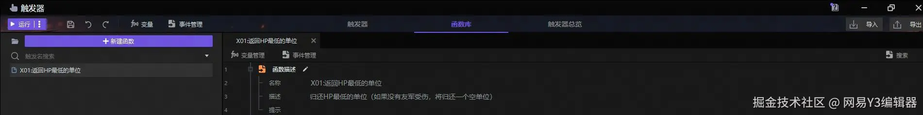 在这里,我们需要新建一个‘获取当前HP最低的友军’函数来查找当前最需要治疗的友军。