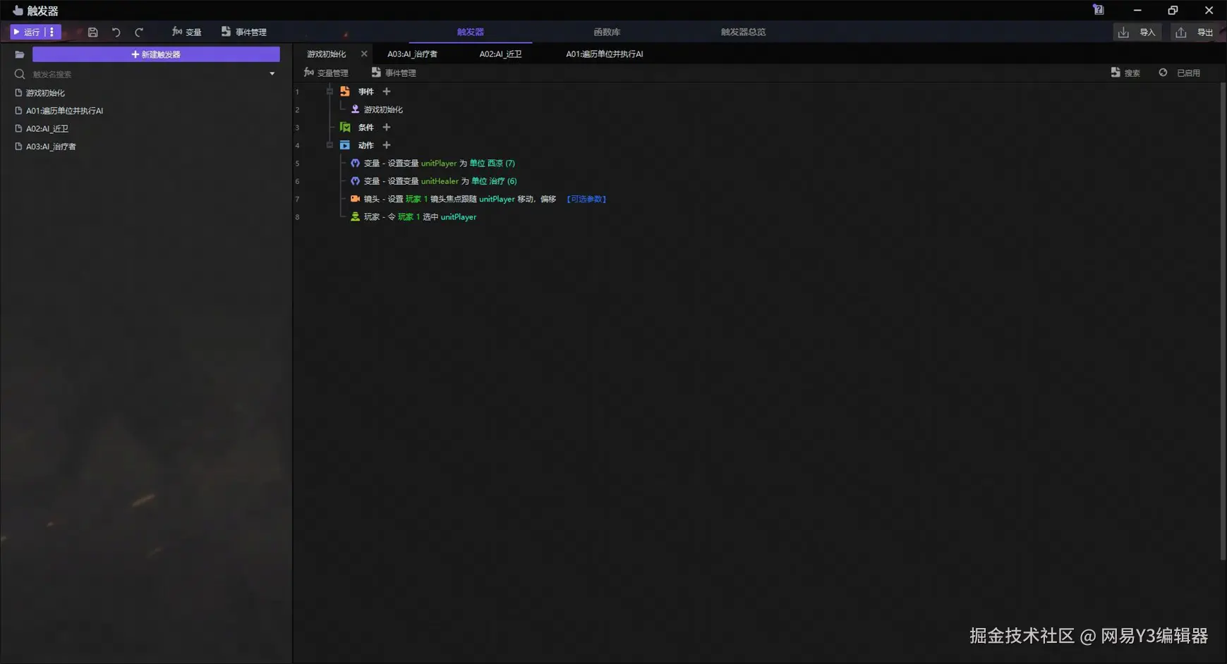 使用行为树之前,先初始化。可以建立全局变量储存经常使用的玩家角色和需要被控制的敌方单位。