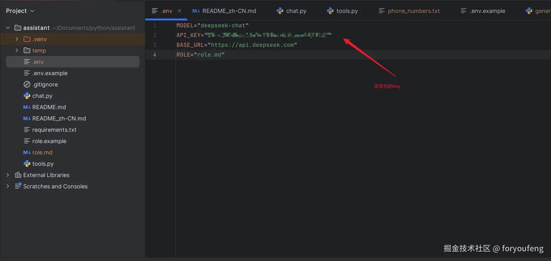 设置到.env的api_key中