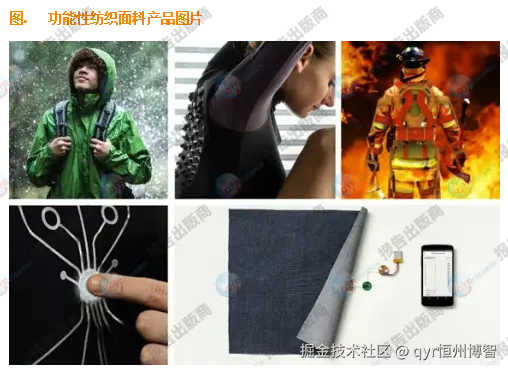 功能性面料,也称为“功能性纺织面料”,是包含用于控制或改变特定应用的集成元素的材料。例如,一些面料可以吸湿让用户保持凉爽,或者含有可以最大程度减少异味的纤维。功能性纺织品是除了基本用途之外还具有内置功能以满足最终用途要求的纺织材料。因此,它们具有根据预期应用进行控制或调整的集成功能。功能特性在生产的不同阶段(例如纤维、纱线织物或服装阶段)融入材料中。所使用的大多数功能材料都是化学剂,能够控制不同的功能特性,例如抗菌、防紫外线 (UV)、防皱和荧光增白剂、抗菌活性、防水性、自清洁特性以及阻燃和防紫外线特性。