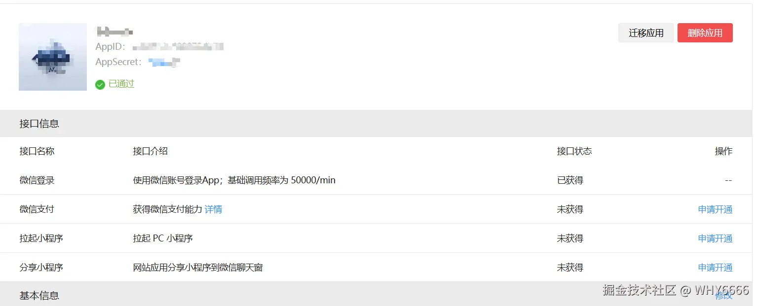 填写完信息后提交审核,审核通过后可以看到创建好的网站应用: