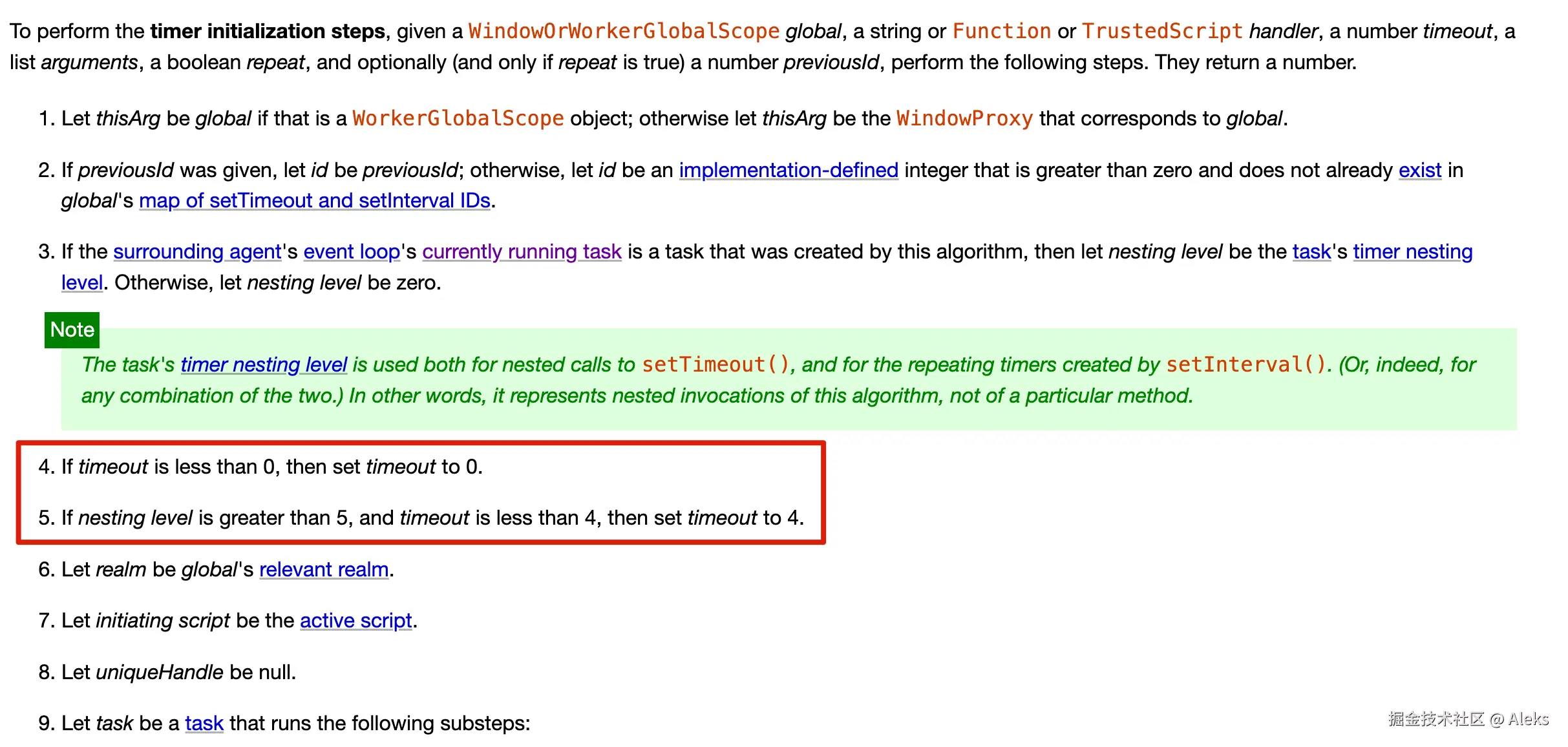 timeout小于 0,则设置为 0 - 如果嵌套的层级超过了 5 层,并且 timeout 小于 4ms,则设置 timeout 为 4ms。