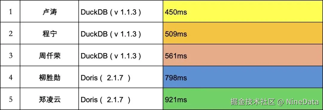 卢涛在进阶挑战解答的基础上,针对 duckdb 进行了优化: