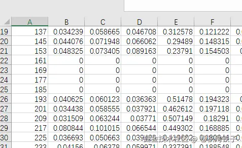 如上图所示,各个文件都有着这样的问题——有些行的数据是无误的,而有些行,除了第一列,其他列都是0值。因此,我们希望就以第2列为标准,找出含有0值数量低于或高于某一阈值的表格文件——其中,0值数量多,肯定不利于我们的分析,我们将其放入一个新的文件夹;而0值数量少的,我们才可以对这一表格文件加以后续的分析,我们就将其放入另一个新的文件夹中。因此,计算出每一个表格文件对应的的0值数量百分比后,我们就进一步将这一Excel表格文件复制到对应的文件夹内。