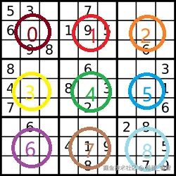(2)cols:一个包含9个空集合的列表,用于跟踪每列中出现过的数字。