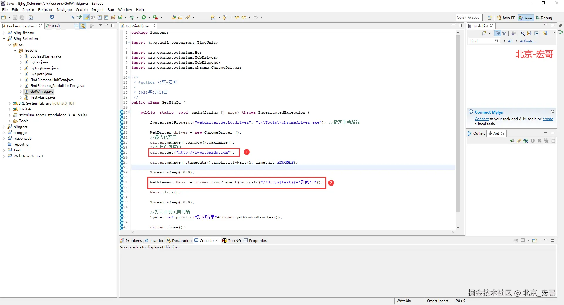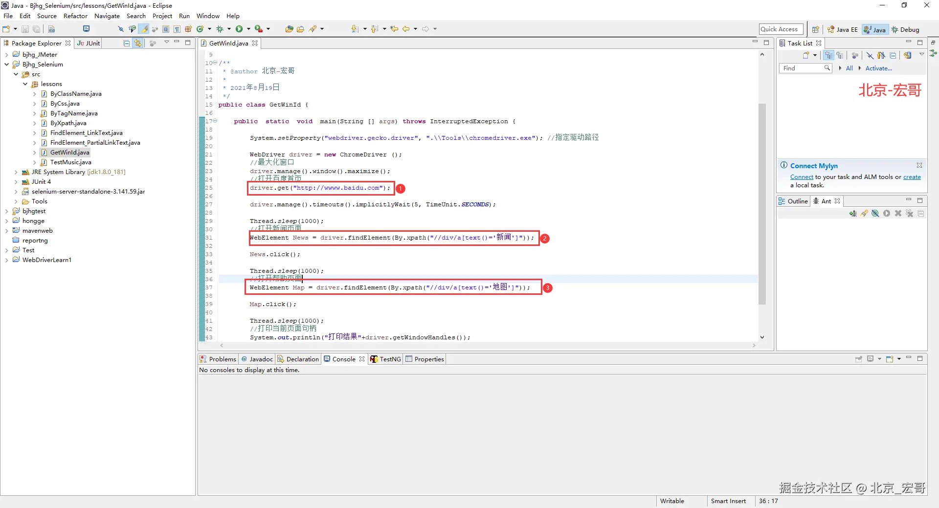 在实际操作中,细心的小伙伴们或者童鞋们已经发现代码的逻辑一直都在百度首页,也就是第一个打开的页面,所以在执行driver.close();时候只有百度首页关闭了,其他页面不受影响,不相信的小伙伴们可以在第一个或者第二个页面定位到页面的元素进行操作,代码会报错告诉你找不到页面元素。所以要想操作对应页面的元素,我们就需要切换到对应窗口的句柄即可。