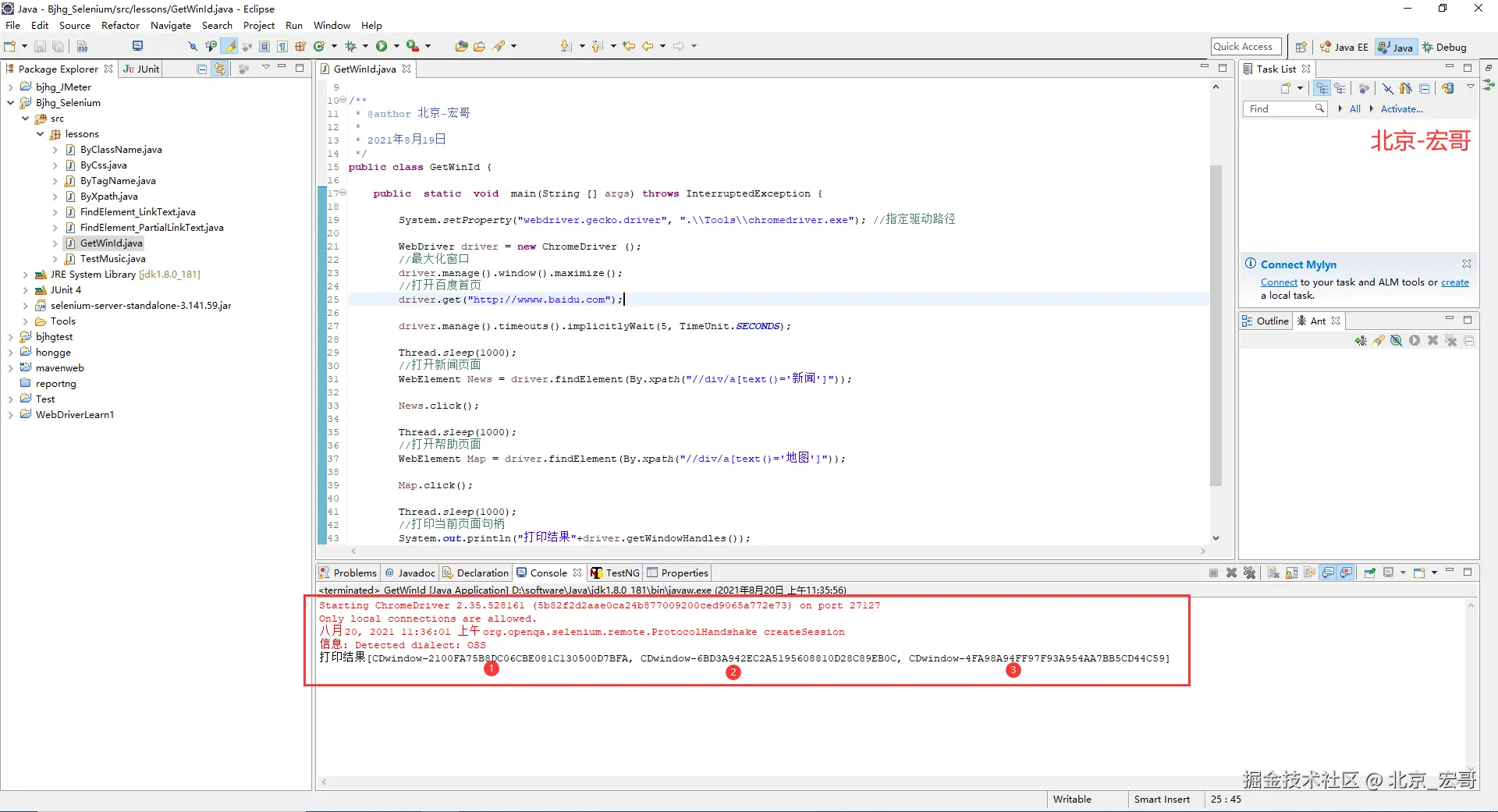 接下来,看看大于两个tab,打印出大于两个windows句柄来,使用getWindowsHandles()方法。