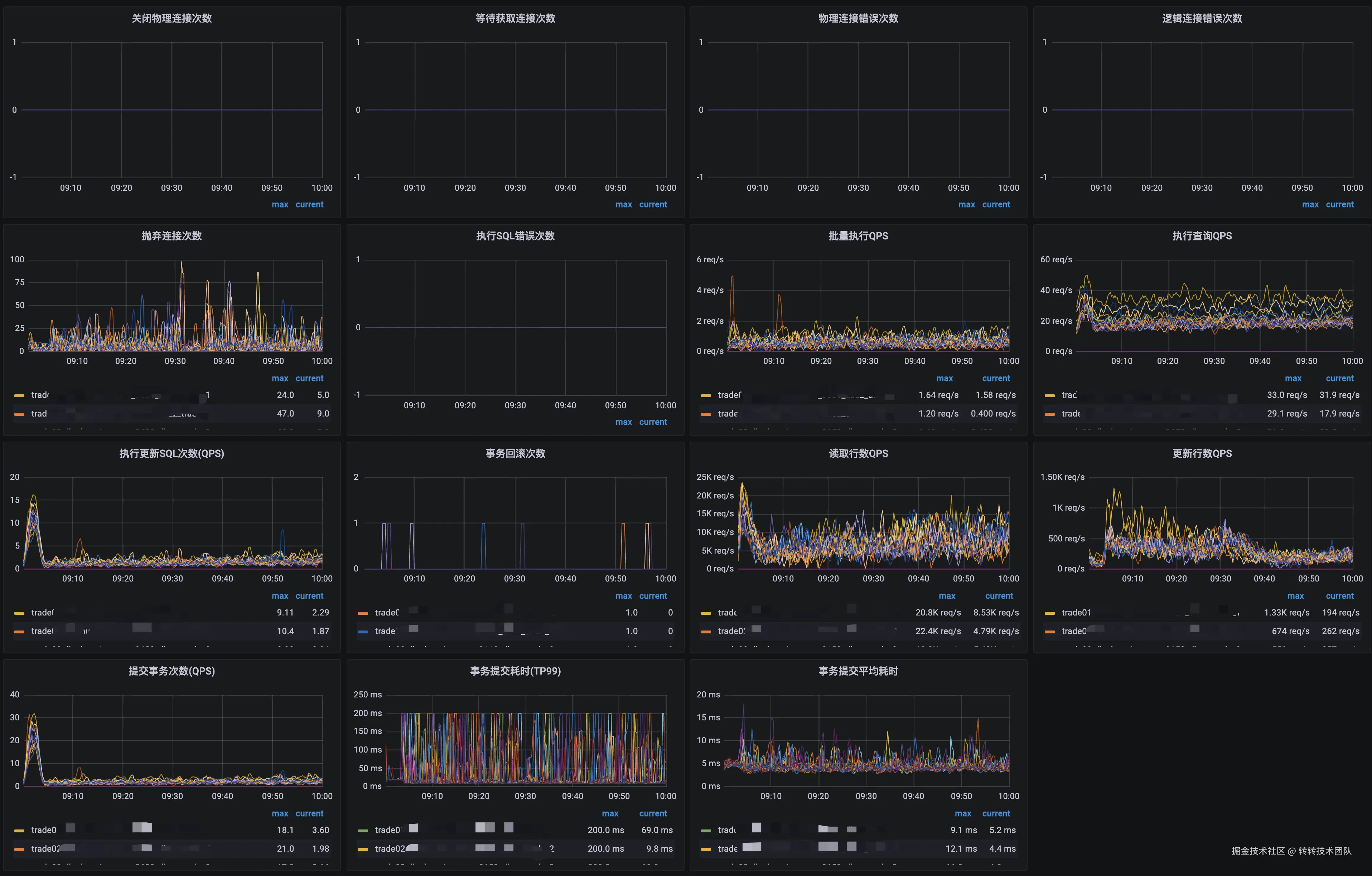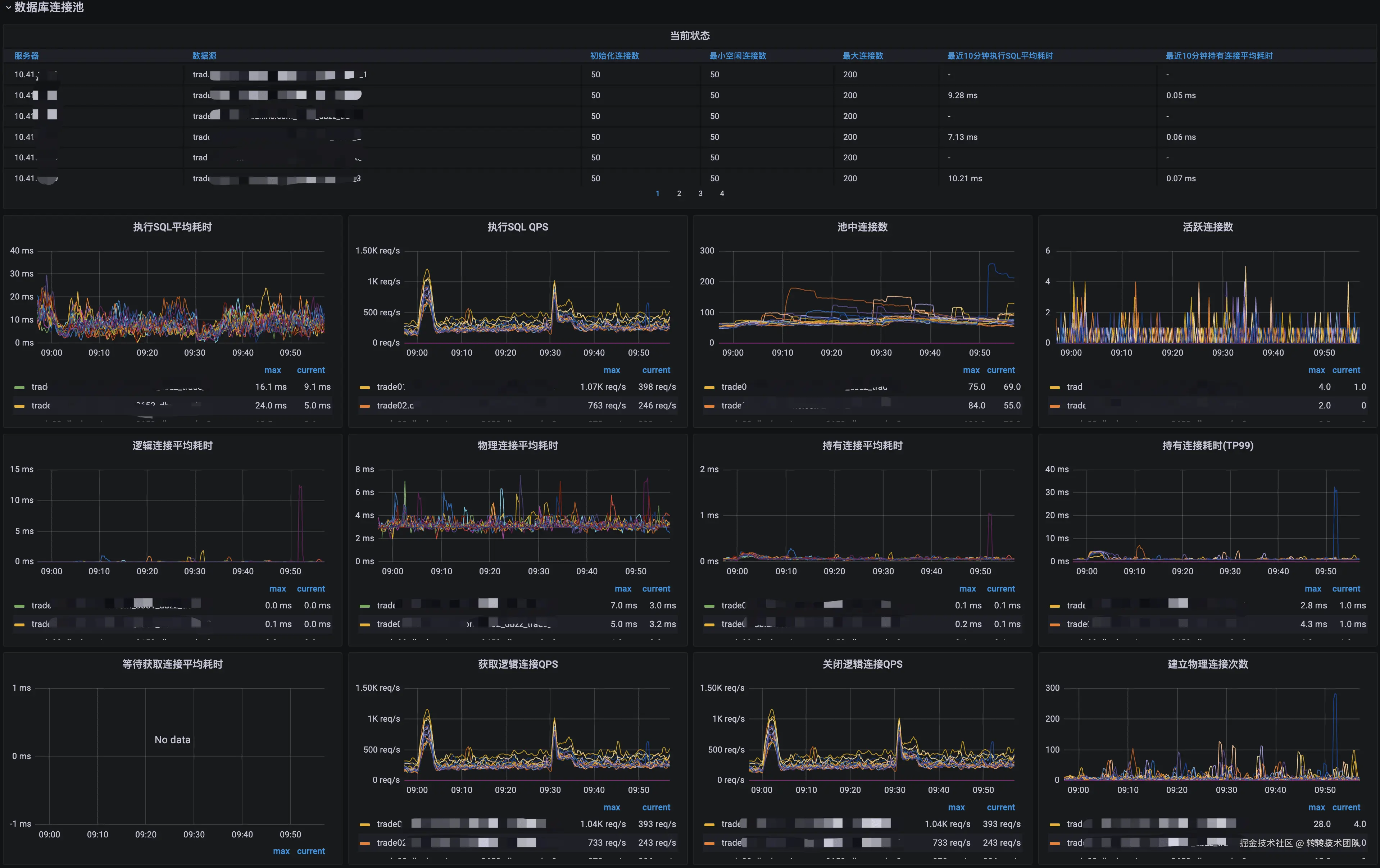 Druid通过SPI开放了很多扩展点,我们架构部基于此封装了监控组件,直接上报到Prometheus。效果如下: