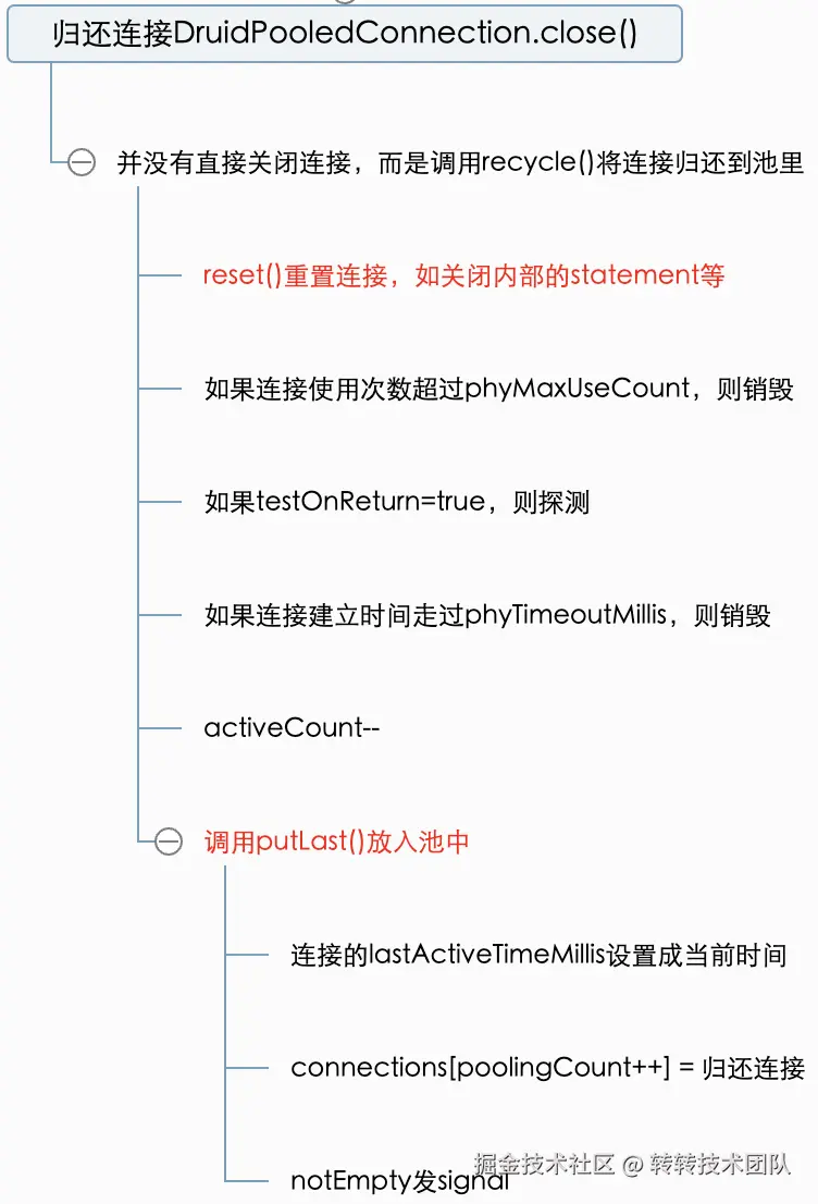 * 1)重置连接;2)归还到连接池。