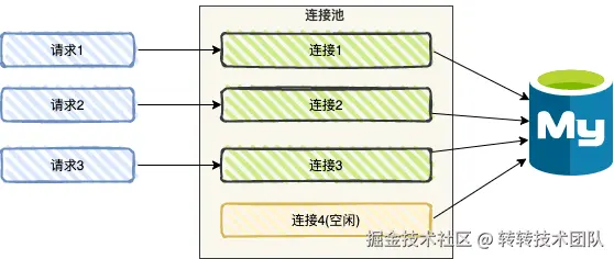 - 提高性能:当业务请求时,因为数据库连接在初始化时已经被创建,可以立即使用,而不需要等待连接的建立,减少了响应时间;