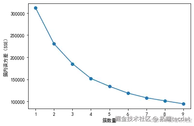 为了确定合适的聚类数目,我们通过循环计算不同聚类数目下的簇内误方差(SSE),并绘制折线图进行可视化展示,代码如下: