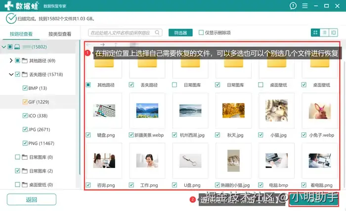 步骤2: 扫描结束后选择自己需要恢复的文件后,点击右下角的【导出】。
