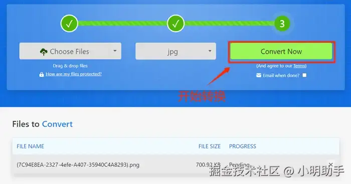 第四步:点击编号3按钮立即开始转换,转换完成之后将图片下载到电脑上即可。