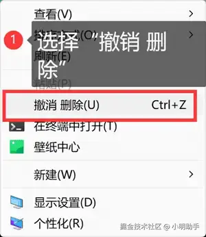 在误删文件的磁盘上空白处,操作鼠标按下右键,选择“撤销 删除” 。