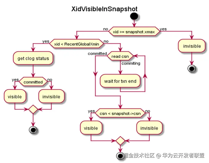 GaussDB MVCC快照可见性的具体判断流程如下: