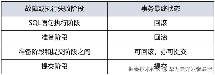 表1 GaussDB发生故障或执行失败时事务的最终状态