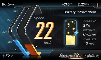 飞凌嵌入式在OK3506J-S开发板上移植了一套Ebike screem的Demo,使用按钮、页面跳转等基本组件配合自定义绘制的背景图片制作出炫酷的仪表盘,可以逼真地模拟电助力自行车的屏幕界面,并展示出速度Speed、电池Battery、时间Time、地图Map等丰富的信息。
