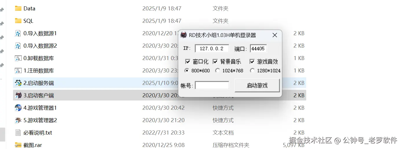 双击启动 “3.启动客户端” , 将信息填到下面弹出框,注意不要填错了。然后点击启动游戏。