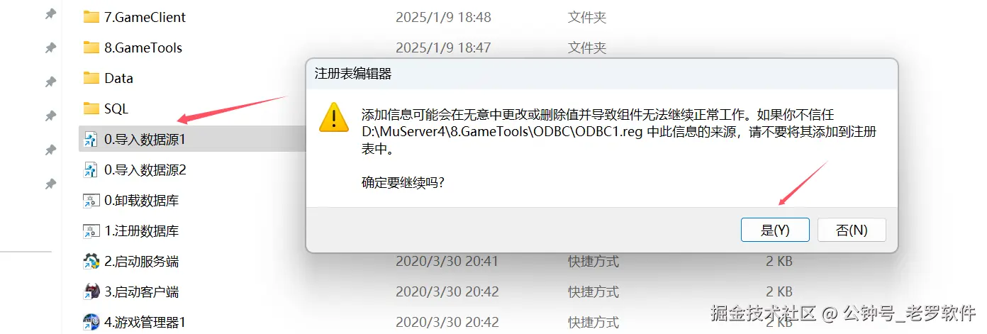 然后右键 管理员方式运行 “1.注册数据库” , 注意:必须以 管理员方式运行,否则游戏后面启动会连接失败!!!
