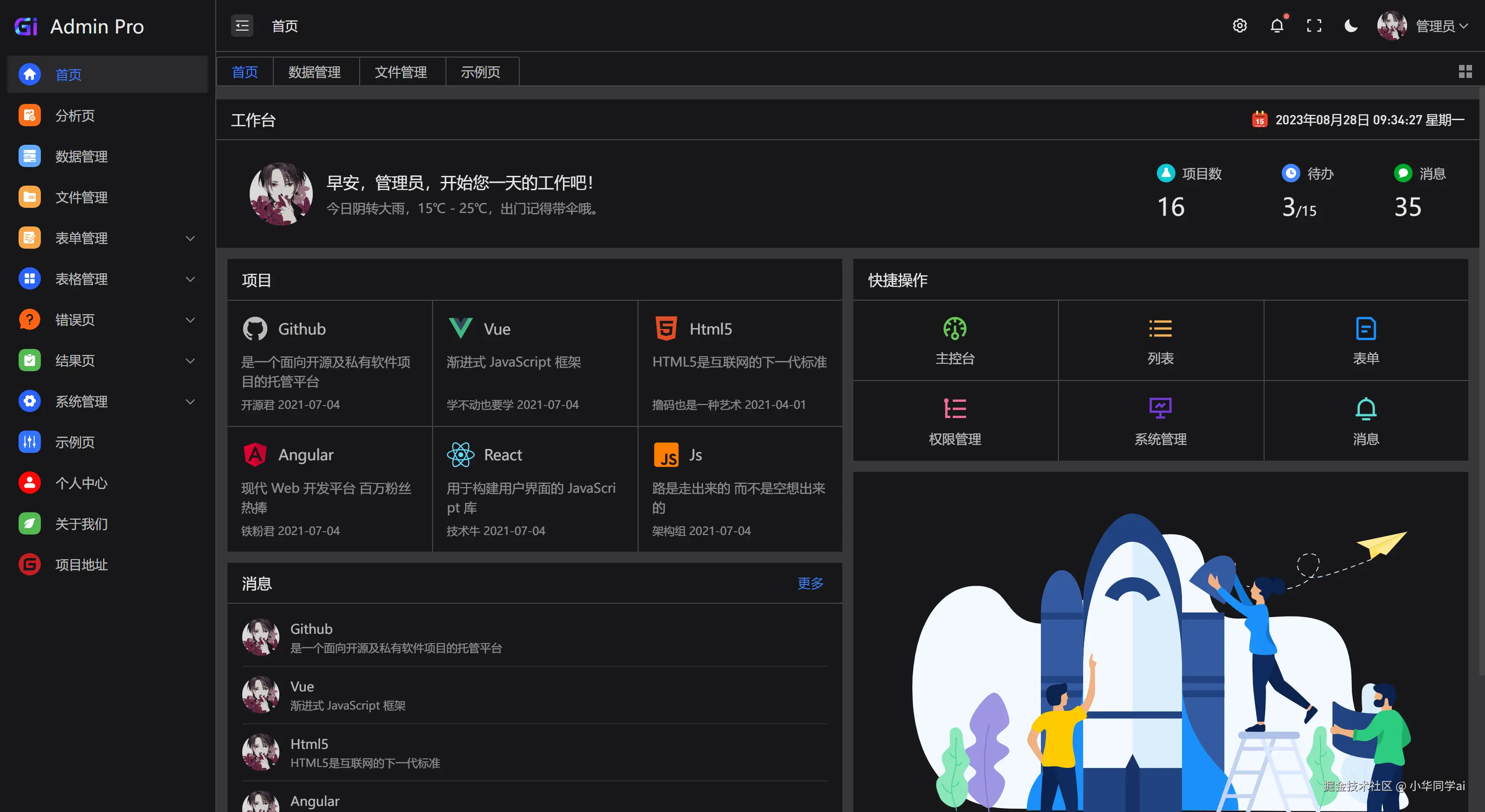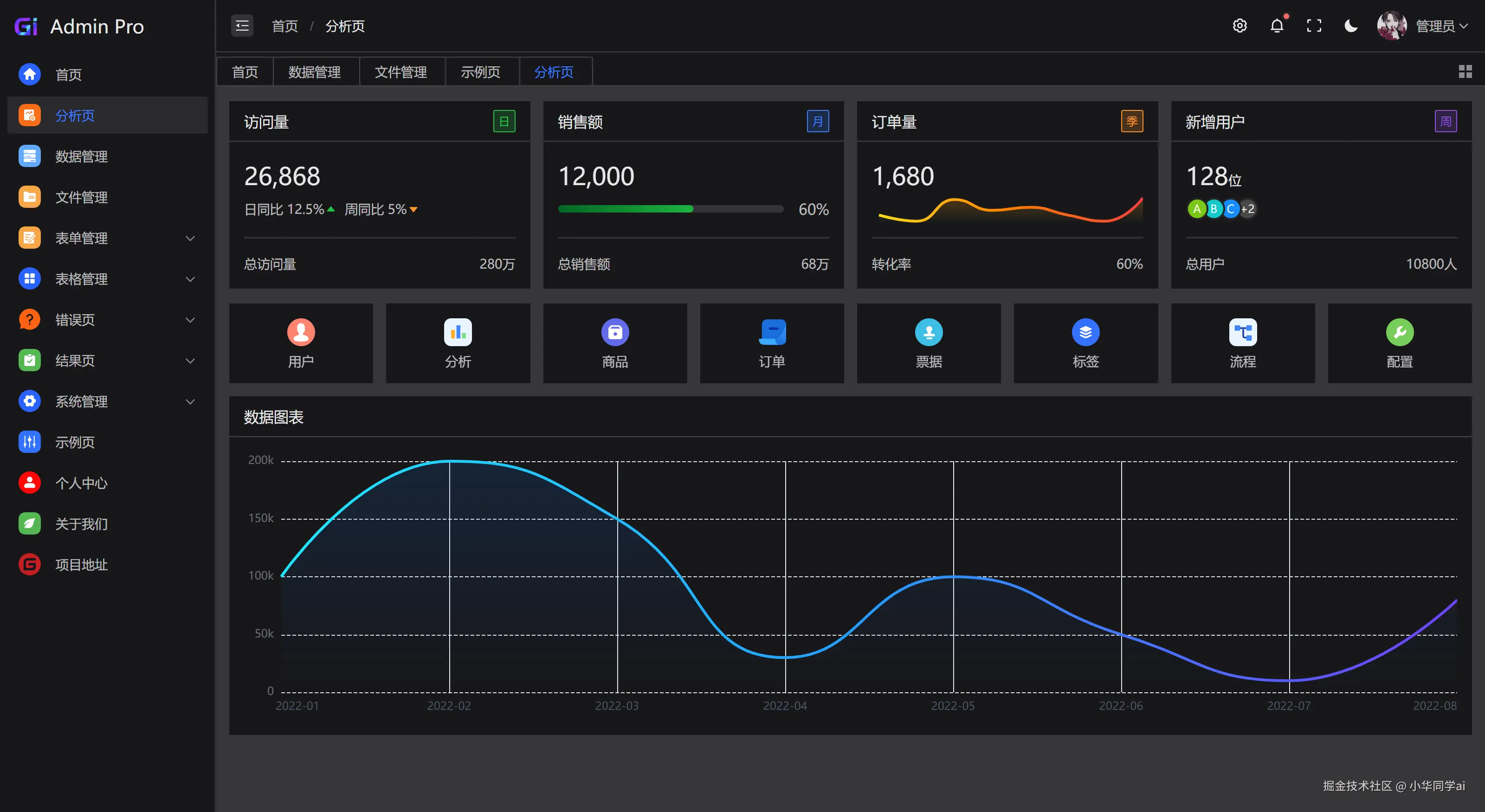 Gi Admin Pro 是一个基于 Vue3、Vite、TypeScript、Arco Design UI、Pinia 和 VueUse 构建的免费中后台模版。它采用最新的前端技术栈,具备丰富的主题配置和极高的代码规范,通过 mock 数据实现动态数据展示,开箱即用且易于学习参考,适合快速搭建中后台管理系统。